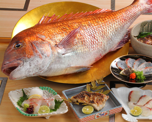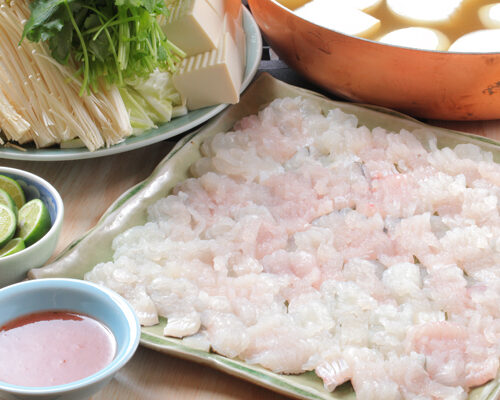 店内の生簀では、淡路産を中心とした天然の鱧・ふぐ・鯛が悠々と泳ぎ、ご注文を受けてから職人の手で丁寧にさばいております。
